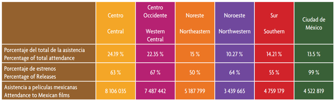 Lo anterior resulta revelador y contradictorio a la vez, porque la capital ocupa la segunda región en donde menos cine nacional se ve. La zona centro, la zona occidental y noroeste son de los territorios que consumen más películas mexicanas.