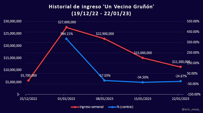 Porcentajes de cambio en la taquilla semanal mexicana