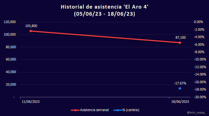 En asistencia El Aro 4 también tuvo el mejor porcentaje de cambio del top 10, un -17.67%.