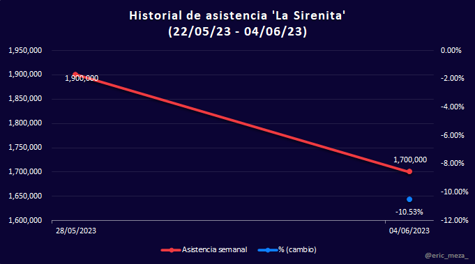 En asistencia, La Sirenita igualmente tuvo el mejor índice del top 10 con un porcentaje de cambio negativo del -10.53%.