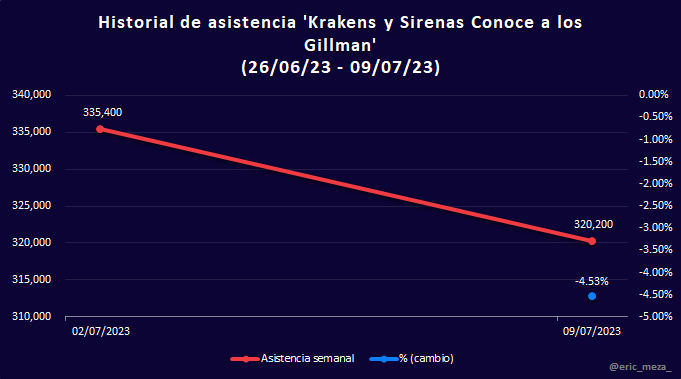 Con un índice de -11.85%, el mejor porcentaje de cambio lo tuvo Krakens y Sirenas Conoce a los Gillman. Considerando que es su segunda semana, tuvo un recibimiento promedio. En cuanto a asistencia, la misma película registró el mejor índice del top 10: un porcentaje de cambio negativo del -4.53%