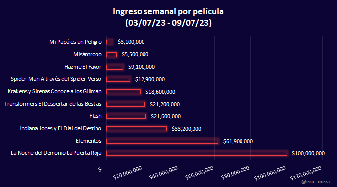 ¿Qué película lideró la taquilla mexicana? ¿Qué distribuidoras aparecieron en el top? Esto y más en nuestro análisis de taquilla mexicana semanal (basado en datos de CANACINE) del 03 al 09 de julio.