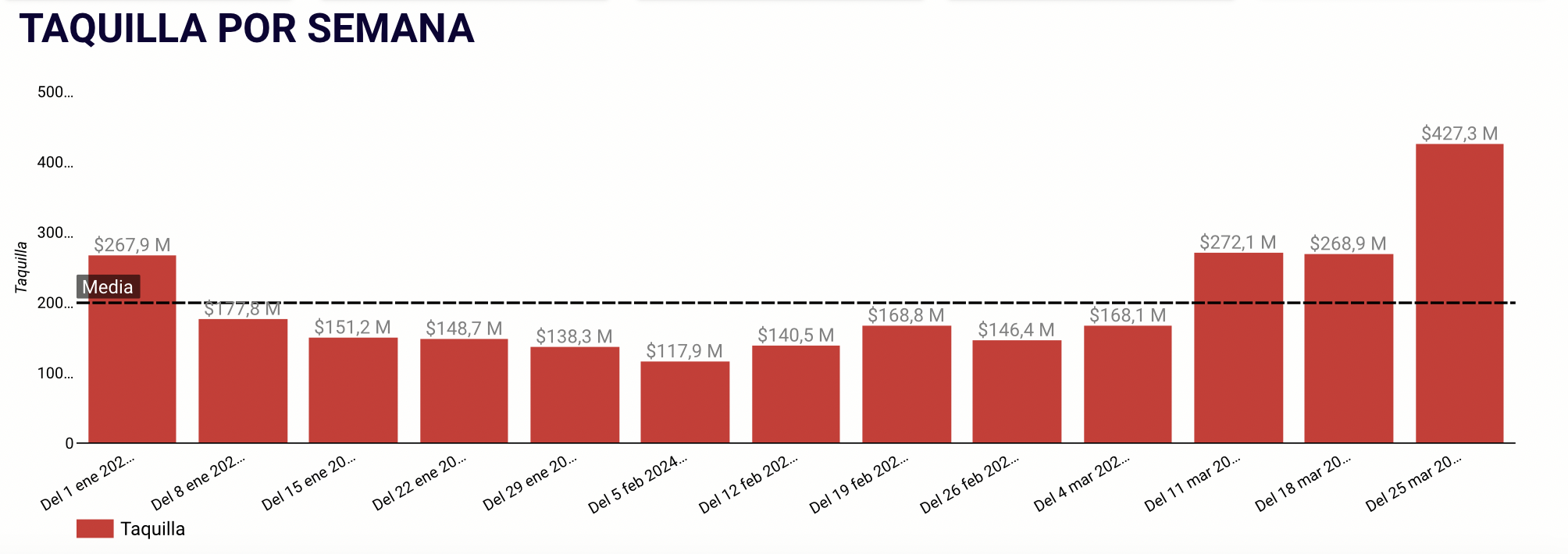 ¿Cómo va la taquilla mexicana en comparación con el 2023? ¿Qué películas fueron las más exitosas de la semana? Esto y más en nuestro análisis semanal (basado en datos de IMDb y CANACINE) del 25 al 31 de marzo. Recuerda que todos los datos que presentamos son públicos y los puedes consultar en nuestro tablero de taquilla mexicana.